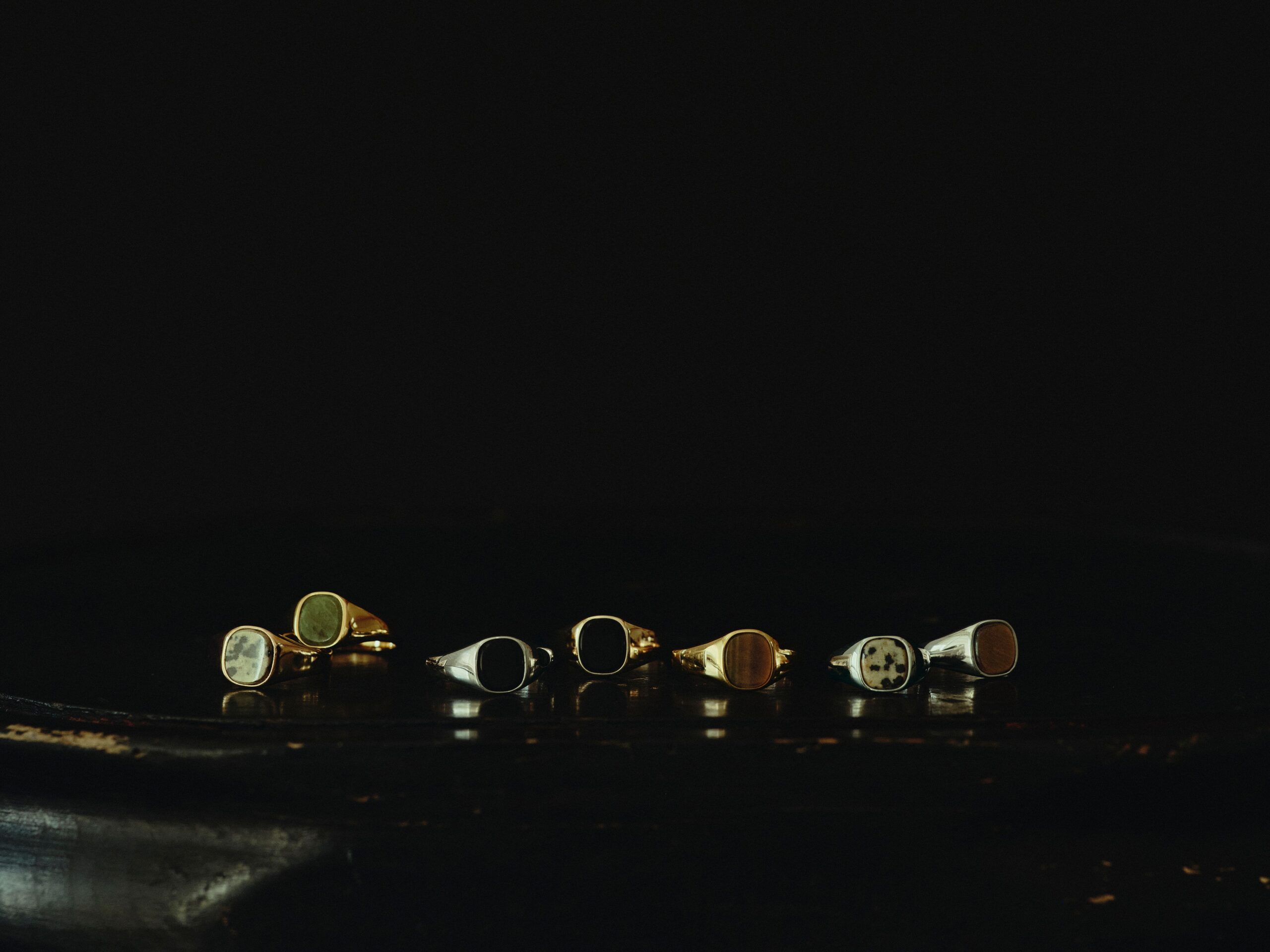 “tiger eye” , “dalmatian jasper” , “nephrite” , “Lapis lazuli” , “onyx” , “red agate” , “Malachite”の7つの石からお選びいただけます。