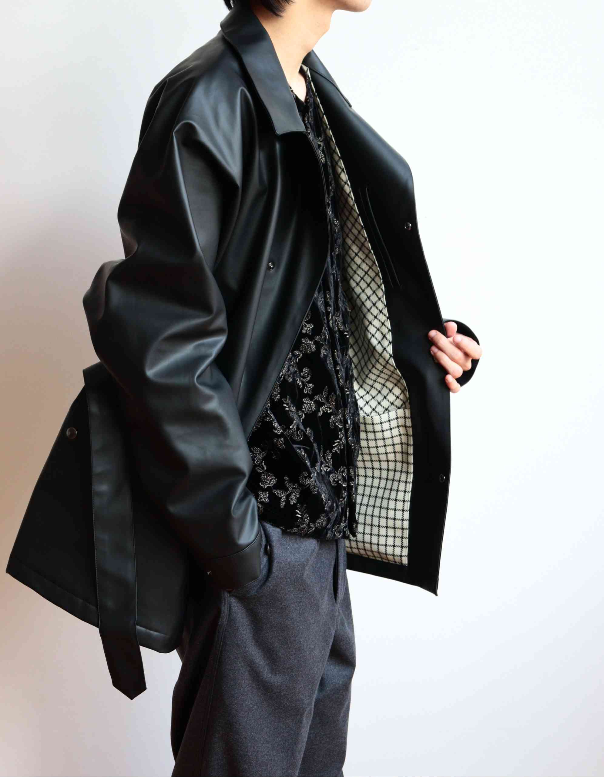 国内素材、小松マテーレのエクスクルーシブ素材であるラバー見えのラミネート素材使用。